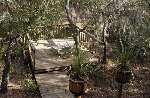 ¡La cabaña está ubicada en un área boscosa completamente nativa justo en el río withlacoochee! El río más pintoresco de Florida ... Actualizado una habitación un baño. Mobiliario de estilo misión elegante pero informal. Completamente amueblado para todas sus necesidades, ropa de cama, utensilios de cocina gourmet, microondas, estufa, refrigerador y toda la vajilla y vasos que pueda necesitar. Toda la propiedad está completamente cercada e incluso hay un paddock cercado por separado cerca de la cabaña, así que traiga a sus caballos para disfrutar de los senderos amigables para los caballos que comienzan en el camino ...