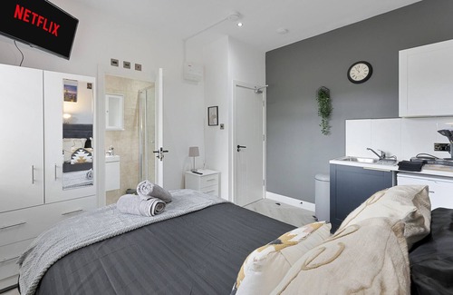K Suites - Stunning Central 1 bed w/free parking posee 1 Dormitorio , 1 Baño, y ocupación máxima de 2 people. El alquiler mínimo para esta propiedad es 1 nights, Pero esto puede cambiar dependiendo de la temporada que planee quedarse. Los invitados anteriores han dado un buen calificado, y VRBO lo etiquetó como un Apartamento de primera calificación debido a los excelentes servicios prestados por el propietario o gerente de este Apartamento, y ha proporcionado constantemente excelentes experiencias para sus invitados. La mayoría de las familias o invitados que lo usan lo recomiendan a sus amigos y algunos son invitados repetidos. Apartamento tiene un vecindario amigable, y el Hanger Hill tiene lugares interesantes para visitar. Si quieres aprender más sobre el Apartamento en Hanger Hill, Como lugares para visitar y cosas para hacer cerca, puede consultar a continuación para obtener más información.