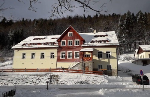 Casa de apartamentos "Pod Mariánskými schody", idóneo para niños, moderno. 10 apartamentos en la propiedad. A 5 km de la zona de esquì, a 100 m del río. Comunitario: terreno. Muebles de jardín, barbacoa, lugar para hoguera, parque infantil (tobogán, cajón de arena). En el complejo: bañera de hidromasaje, tenis de mesa, billar, sala de juegos, futbolín, trampolín, sala para guardar bicicleta, sala guardaesquís, calefacción central, lavadora, secadora para botas de esquí. Aparcamiento en el mismo terreno, extra. Tienda 2 km, supermercado 7 km, restaurante 2.5 km, bar 2.5 km, panadería 2.5 km, parada autobús "Desná centrum" 2.5 km, estación de tren "Desná centrum" 2 km. Rutas de senderismo desde la casa 500 m, telesquí 6 km, alquiler de esquís 6 km, escuela de esquí 6 km, escuela de esquí para niños 6 km, pista de esquí de fondo. Atracciones en los alrededores: Protržená přehrada 6 km, Mariánské schody 400 m, Rozhledna Světlý vrch 2 km, Skokanské můstky Desná 850 m, Vodopády na Černé Desné 5 km, Riedlova hrobka Desná 3 km. Zonas de esquí populares fácilmente accesibles: ski area Albrechtice 6 km, ski area Černá říčka 6 km, ski area Špičák 7 km. Lagos conocidos fácilmente accesibles: přehrada Souš 7.5 km. Zona de senderismo Jizerka 16 km, Mariánská hora 2 km. A tener en cuenta: adecuado para familias.