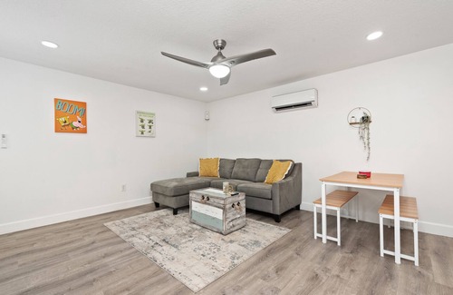 Este alojamiento de 1 dormitorio y 1 baño cuenta con una sala de estar, una zona para barbacoas, aire acondicionado y escritorio. El cuarto de baño incluye un secador de pelo, toallas y papel higiénico. La cocina está equipada con horno, placa de cocina y frigorífico, además de cafetera y tetera, máquina de hielo y microondas. Y como hay una lavandería en los alrededores, no necesitarás llevarte mucho equipaje.