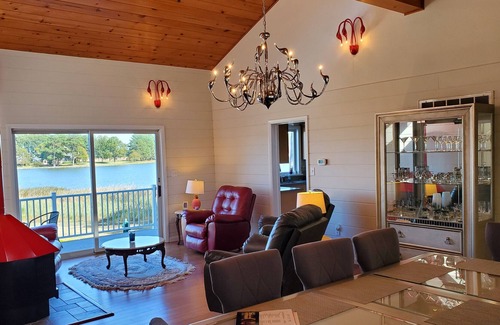 Kingsbay Waterside Retreat es un moderno, compuesto de línea de costa elegante y sin duda uno de los tipos. Situado en la costa este de Maryland, Waterside está situado en la península de Coulbourn Creek en la boca de la bahía de Chesapeake al norte de Crisfield Maryland. Recientemente comprados por los propietarios de Kingsbay Mansion Executive B&B, están brindando su experiencia en hospitalidad y estilo de diseño a esta propiedad recientemente renovada, que se completó y estuvo lista para los huéspedes el 1 de julio de 2017. Este complejo boscoso, moderno y privado tiene una impresionante panorámica frente al mar con un muelle de 160 pies y una piscina nueva en el suelo. La piscina es una piscina compartida con los huéspedes de la casa.