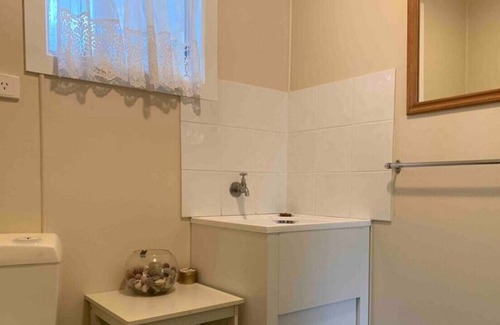 2 bedroom cabin - sleeps 4 - fully equiped kitchen, own toilet, shared shower block. BYO LINEN AND TOWELS - 1 queen bed and 1 double bed.