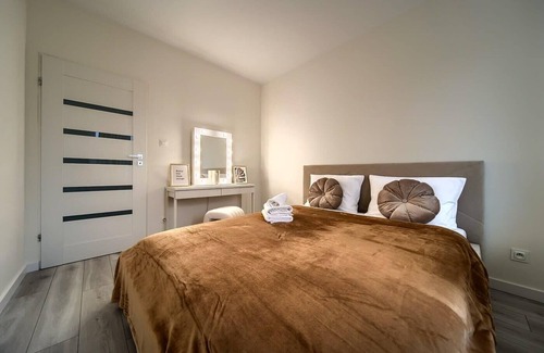 Kościańska Cosy Apartment is a stylishly furnished apartment, featuring a living room with a sofa bed, a bedroom with a king-size bed, a kitchen, a bathroom, and a spacious balcony where guests can relax and enjoy a morning coffee or an evening glass of wine. Guests have access to a range of practical amenities, including free Wi-Fi, terrestrial TV, washing machine, hairdryer, iron, dishwasher, oven, microwave, fridge with freezer, and kitchen accessories. Parking space outside the building is also available for guests.