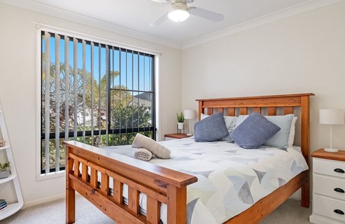 This delightful holiday home offers four bedrooms, two bathrooms, ducted air conditioning and a drive through garage and is ideally located in a quiet well maintained residential area of Yamba. Kokoma is surrounded by well established manicured gardens taking full advantage of the northerly aspect, complete with sandy beach and a private pontoon and jetty.
