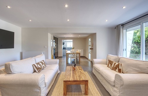Al instalarte en este alojamiento de 6 dormitorios y 2 baños, encontrarás una sala de estar y oficinas. Prepara una comida casera en la cocina, equipada con horno, frigorífico y lavavajillas, además de cafetera y tetera, hervidor eléctrico y microondas. Y hay acceso a una lavandería, de modo que necesitarás poco equipaje.