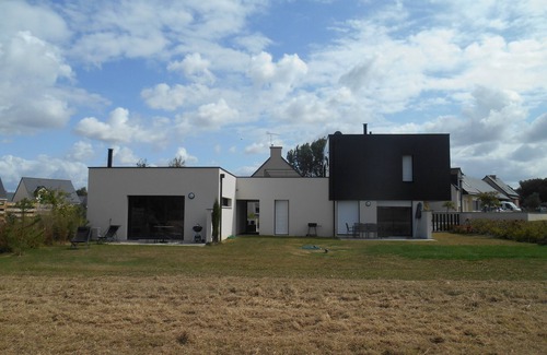 En un gran jardín de 7,000 m2, le espera una nueva casa de arquitecto contemporáneo con formas cúbicas audaces. La vista es clara, sin pasar por alto, en el campo, la península de Saint Jacut y la bahía de Lancieux. El jardín bordea el GR 34 y la vía verde 4. La casa está bañada de luz. Baie de la Beaussais 10 minutos a pie. Gran tranquilidad St Malo, Dinan, Dinard 30 minutos en coche. Estilo interior moderno y casual.