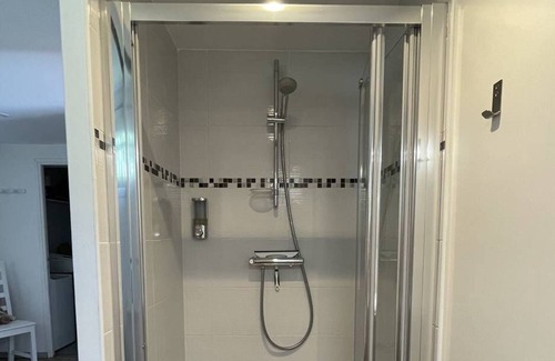 Vous trouverez une chambre spacieuse avec un grand-lit (140 cm) et sa salle d'eau avec douche attenante.