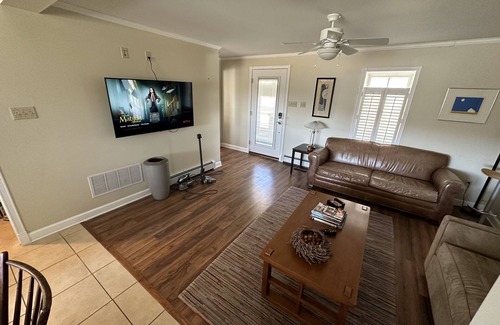 Lincoln House duerme 10 en 4 habitaciones queen, así como una cama queen. La casa tiene 4. 5 baños. Hay camas plegables disponibles. Cene en la cocina completa y relájese en las 2 salas de estar. Siéntese afuera en los dos porches al frente y una terraza atrás.