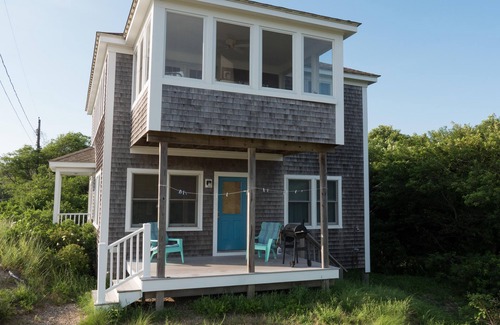 Imagínese relajarse después de un hermoso día en Corn Hill Beach, saboreando un cóctel y contemplando una impresionante puesta de sol desde su elevado porche en el porche. Disfrute de las vistas panorámicas de la bahía de Cape Cod y el puerto de Pamet. Esta casa de playa tiene capacidad para 6-8, tiene dos baños, una cama king size, una cama queen size y literas para los niños.