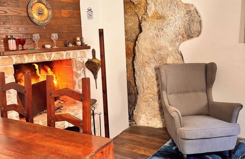 La casa cuenta con un acogedor dormitorio, una práctica cocina americana equipada con nevera, horno pequeño y dos placas eléctricas, una zona de estar con televisor de pantalla plana y un cómodo salón para relajarse. El baño dispone de bidé, toallas y ropa de cama incluida, para que te sientas como en casa.