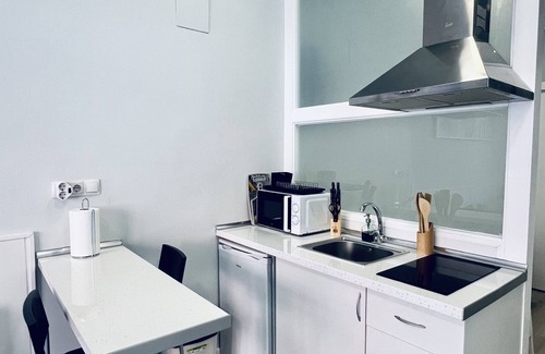 Este alojamiento es un apartamento totalmente nuevo. Es un estudio con sala de estar, cocina americana, habitación y baño independiente.