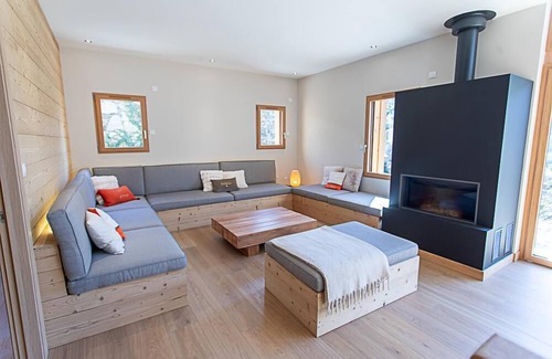 Treat yourself to an unforgettable stay in a beautiful contemporary house with architecture inspired by old Pyrenean barns, elegantly blending wood, stone, and generous volumes! Located between the Peyragudes resort and Bagnères-de-Luchon, this rental is ideal for stays with friends or family, in a relaxing setting. No screens or Wi-Fi here: time to disconnect and reconnect with nature, in a peaceful and unspoiled environment. On the agenda: hiking, mountain biking, or fishing 300m away, skiing 8km away, thermal spas, shops, and entertainment in Luchon (7km), wellness at Balnéa (19km), or local discoveries with the village producers (goat cheese, beekeeping). City stadium 300m away: table tennis, tennis, soccer, and basketball... A covered carport allows parking for two cars in front of the door. A storage room on the ground floor can accommodate skis, boots, and bicycles. La Grange gîte offers a warm and bright atmosphere thanks to its large south-facing bay windows, a veritable balcony overlooking the mountains. It can accommodate up to 12 people, spread over three comfortably furnished levels: - Direct access from the street to the middle floor: entrance hall, 3 bedrooms accessed by a mezzanine corridor, each with a 160x200cm double bed, bathroom with double sinks and 2 showers, and toilet. - On the upper floor: dormitory with four single beds (90x190cm), play area with ottomans and rugs - On the garden level (level -1 from the street): large living room opening onto the terrace and garden (fireplace with insert on the living room side), pantry/laundry room (washing machine and dryer, large freezer), separate toilet with washbasin, 1 bedroom with a double bed (160x200cm) with its own dressing room, private bathroom, and toilet. Electric heating. Pets not allowed. Modern comfort combines with mountain authenticity for a timeless stay, whatever the season.
