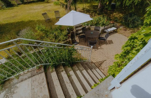 Coming from a historic family of winegrowers established on site since 1830, Fernand & Catherine welcome you to a charming, authentic, 19th-century Burgundian residence, fully restored - a winegrower's house with old-world charm steeped in family history - peacefully located on their family wine estate run using organic farming methods (AOC Maranges Côtes de Beaune / visits & tastings possible under old vaulted cellars dating from 1798). On the edge of the vineyards, in a residential hamlet overlooking the picturesque wine-growing village of Cheilly-les-Maranges, nestled along the Canal du Centre on the borders of the Cosanne & Dheune rivers. Magnificent landscaped setting (protected as a "Natura 2000 Zone" & ZNIEFF for its rich ecosystems), nestled in the heart of the Maranges Valley and its bucolic rolling wine-growing countryside combining vineyard hillsides, wooded meadows, and beautiful wild forests. Spacious, very comfortable cottage. Warm country character blending a contemporary feel with the gentle ambiance of a "family home," enhanced by the exotic spirit of the place (original fireplace mantels, doors, beams, etc.). Large exposed terrace (completed by a panoramic balcony) opening onto a pleasant 1000m² lawned, wooded, planted, and flowered garden. Composition: Detached house (completely independent) adjoining various buildings (rooms sometimes rented and outbuildings of the owners' neighboring wine estate housing their residence). Wi-Fi (fiber). Gas central heating + fireplace. Ground floor: kitchen, bathroom (shower/toilet), laundry room. Half floor: living room, 3 bedrooms (double bed 160x200cm / single bed 90x200cm / double bed 160x200cm), 1 of which is accessible from the outside and converted into a studio with kitchenette, wood stove, bathroom (shower/WC) & private balcony-terrace. Garden (1000m²) + terrace + balcony-terrace (x 2) + private parking. Bicycle storage. Small shops & mini-market 3.5 km. Amenities & supermarkets 8 km.