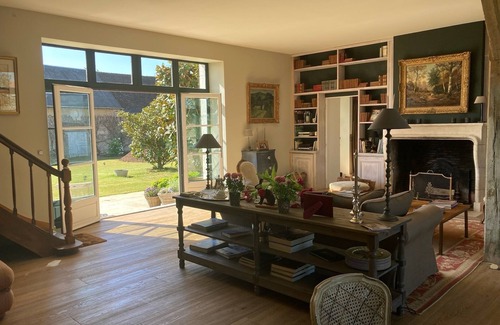 La Maison Grande: Magnifique Corps de Ferme de 700m2 Entièrement Rénové, 14 Pers Se encuentra en Mulsans. La Maison Grande: Magnifique Corps de Ferme de 700m2 Entièrement Rénové, 14 Pers ofrece alojamiento, con Estacionamiento, TV, Chimenea/Calefacción, Entre otras comodidades. Estas características Casa Estacionamiento, TV, Chimenea/Calefacción, Para que su estadía sea cómoda.
