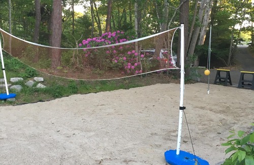"Ivy Woods": volver atrás en este retiro natural de Osterville. Esta propiedad frente al mar es una joya escondida ubicada en Neck Pond con más de 200 pies de frente costero en 1. 25 acres de tierra. Las vistas del estanque son tranquilas, mientras que el lote arbolado te hace sentir como si estuvieras en un refugio de campamento. Los observadores de aves disfrutarán el café de la mañana con peckers de madera, patos, ardillas, bluejays y más. Dos búhos te saludarán por la tarde. "Buster" la enorme rana del toro se puede escuchar durante el verano. La casa principal fue construida en 1914 y conserva el encanto de su arquitectura original con pisos de madera de pino, 2 chimeneas a leña, paredes de paneles de madera en el piso superior, 6 dormitorios, 4 baños, terraza acristalada y porche cerrado con vista al estanque. La casa del barco y la zona de picnic son una gran sala de juegos y espacio de entretenimiento en la orilla arenosa del estanque. Fogón al aire libre y barbacoa (gas) proporcionado. El camino de entrada es grande y puede aparcar más de 5 coches. Este es el mejor destino de vacaciones. 1er piso baño principal en suite (bañera / ducha) a la habitación con cama King 2do dormitorio - 1er piso baño en suite (bañera / ducha) a la habitación con Trundle que se extrae a la cama King con TV compatible con HDMI Ipad. 3 º dormitorio-2 º fl tiene cama King con vista al agua. Cuarto dormitorio-2do piso tiene dos camas individuales. El quinto dormitorio, el segundo piso tiene una cama doble / completa con vista al agua y una televisión con reproductor de vídeo. El sexto dormitorio es una habitación pequeña para niños con una cama doble y una cama doble plegable para los visitantes sorpresa. Pintura más nueva en todo excepto en salón y cocina. Mobiliario costero. Bañera de hidromasaje / ducha 1er baño de arriba. Ducha con chorros 2do baño de arriba. Asientos al aire libre y un pozo de fuego. Esta gran casa de vacaciones tiene capacidad para 12 personas, pero solo permitimos 10 como máximo. La sala de estar con chimenea y vista al agua tiene TV compatible con HDMI Ipad con reproductor de DVD y VCR. Al final hay un comedor informal con capacidad para 6 personas. Ivy Woods es ideal para reuniones familiares, vacaciones y ocasiones especiales. Este complejo familiar le ofrece comodidades modernas y cómodas habitaciones en un ambiente relajado, una base excelente para explorar Cape Cod. Estacione su automóvil y camine hasta las mejores tiendas, restaurantes, heladerías, galerías de arte, playas y conciertos. Mucho espacio de estacionamiento en la entrada grande. La cocina totalmente equipada ha actualizado los electrodomésticos más nuevos y también ofrece una lavadora y secadora nuevas más nuevas en un área de lavandería de nivel inferior para su comodidad. Hay WIFI disponible para mantenerse conectado, así como unidades de aire acondicionado para mantenerlo fresco. La cocina tiene un sistema de filtración de agua por goteo AlexaPure. La sala del jardín es un porche cerrado cerrado que ofrece cómodos asientos con vista al agua como un lugar especial para sentarse con un libro o simplemente observar a la gente mientras su familia disfruta de las actividades del estanque. Características de la casa Ivy Woods Duerme cómodamente 10 personas en camas con habitaciones decoradas con buen gusto. Por favor, tira las camas al final de la estancia y antes de las 10 am y lavamos la ropa. Amplias salas de estar y habitaciones familiares, porche cerrado del jardín, solárium, todas con vistas al agua. Gran comedor formal / mesa con capacidad para 8. Cocina totalmente equipada, así como un refrigerador y congelador adicionales en el sótano (notifíquenos con anticipación si lo necesita encendido). Relajante porche cerrado adjunto a porche cubierto con barbacoa de gas. Patio privado con mesas de picnic y juegos / playa cobertizo. Películas, juegos de mesa, una bicicleta vieja, palos de lacrosse, dardos, fideos de agua e hinchables, y otros entretenimientos divertidos en el cobertizo del juego. Hay un mínimo de siete noches que comienza los sábados durante el verano.