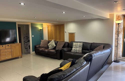 El salón de planta abierta, el comedor y la cocina son extremadamente amplios con vistas panorámicas sobre el valle del hacha hasta la costa jurásica. El espacio de la planta baja está alicatado con calefacción por suelo radiante, esto lo mantiene fresco en verano y tostado en invierno. Hay una pequeña área de jardín para relajarse y quizás hacer una barbacoa. La cocina está totalmente equipada para grupos grandes, con dos hornos y una gran nevera / congelador. La mesa de comedor tiene capacidad para 16 y el salón es muy relajante, con sofás grandes y cómodos, TV de pantalla plana LCD y soporte para iPod, no olvidemos el wi-fi gratuito.