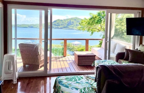 Million-dollar view from this beautiful one-bedroom home with vaulted ceilings and wide expanse views from inside and out, perfect retreat for those seeking a more private and remote island experience. Located in Caribe Point Bight, one of Roatan’s most pristine little bays which boasts some of the most beautifully clear water and snorkeling.