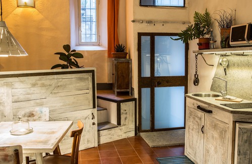 Apartamento característico en un histórico Palazzo di Bagnaia. Los aldeanos llaman al callejón Ghettaccio porque una vez hubo una pequeña comunidad judía. A 4 km de Viterbo y a tiro de piedra de la encantadora Villa Lante. La renovación del apartamento se realiza con materiales reciclados y adaptados. El lugar ideal para una escapada romántica entre las bellezas naturales y culturales de Tuscia.