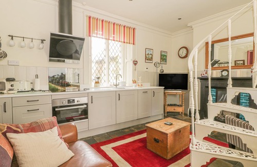 Esta taquilla victoriana de grado II ha sido convertida imaginativamente y ha conservado muchas de sus características originales. La sala de estar, la cocina y el comedor son de planta abierta, y la cocina compacta y bien equipada y el área de comedor de estilo cortijo están ingeniosamente proyectadas por la escalera de caracol desde la cálida y acogedora sala de estar con su original taquilla de hierro fundido y azulejos. . Sinuosa a través de esta propiedad deliciosamente peculiar, las escaleras de caracol suben a los aleros donde espera la acogedora e íntima habitación de estilo cabaña, y el baño también se encuentra en este espacio. Los huéspedes pueden disfrutar del área con césped al frente de la propiedad. Esta es una hermosa propiedad y es un escondite perfecto para disfrutar de esta área.