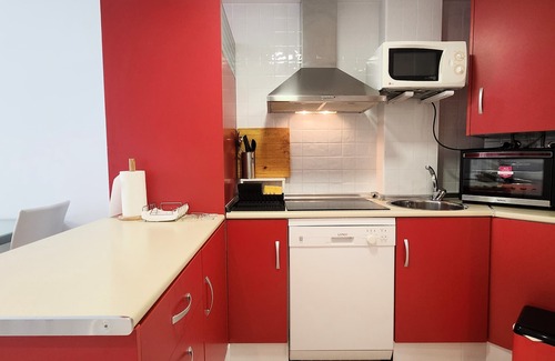 Dispone de Salón/Comedor con Smart-Tv, WiFi, Aire Acondicionado y salida al pequeño patio privado exterior. Cocina americana completamente equipada (Lavavajillas, horno, vitro, nevera, etc...) y con todos los pequeños detalles como tostadora, cafetera, batidora... Dispone de sofá-cama. Dormitorio con cama de 150cm y cama individual, amplio armario y también con aire acondicionado. Baño con bañera y lavadora. Parking con plaza privada en la misma urbanización.