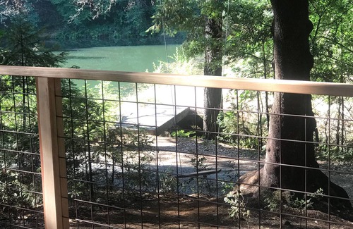 La cabaña fue construida originalmente en 1930; aún se pueden ver los troncos que usaron para sostener el techo y la hermosa chimenea de cuarzo que es el punto focal en la acogedora sala de estar. Fue actualizado en los años 90 y recibió una nueva capa de pintura el verano pasado. En realidad, hay 5 edificios en la propiedad: Cabina principal, Bunkhouse # 1, Bunkhouse # 2, The Boat House y The Garage. Todos tienen mucho encanto y singularidad a su manera y todos tienen una vista del lago. La característica más singular de 'Lagunita' es sin duda el entorno ... Se asienta sobre un hermoso pequeño lago en el corazón de Sierra Nevada ... rodeado de viejos cedros, pinos y madroños. Hay una cascada en el lado derecho de la cabina que corre todo el año, imagínese relajándose en la cubierta o en la hamaca con el sonido tranquilo del agua que se lava constantemente sobre las cataratas. A pocos pasos de la cubierta trasera y en el lago pescando, nadando o remando en el paraíso.