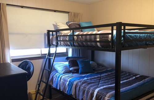 El apartamento de huéspedes / garaje es de dos dormitorios y dos baños y tiene capacidad para más de 12 personas. Nuestra casa y casa de huéspedes está en un lote de 2 acres y tiene un largo camino privado y arbolado con mucho estacionamiento. La casa tiene una cocina completa y completamente equipada, un comedor y una sala de estar con chimenea. La casa tiene una sala de estar adicional en el nivel inferior. La terraza privada es un gran lugar para comer, sentarse, hablar y disfrutar del amanecer y las puestas de sol. Si elige usar la parrilla de gas, debe traer su propio tanque.