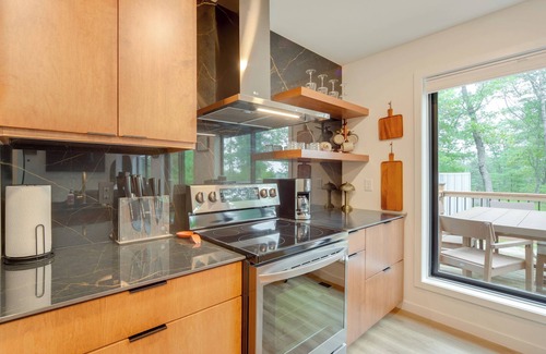 En esta cabaña para no fumadores tendrás lavandería y un jardín a tu disposición.