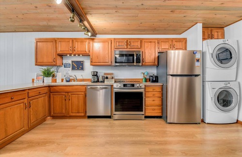 La cocina está equipada con horno, placa de cocina y frigorífico, además de cafetera y tetera, hervidor eléctrico y microondas. El cuarto de baño incluye un secador de pelo, toallas y papel higiénico. Y gracias a la lavadora y la secadora, podrás viajar con poco equipaje. Otras comodidades incluyen una parrilla, ropa de cama, calefacción y una mesa de comedor.