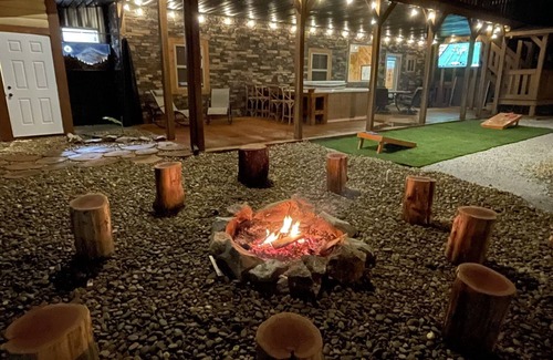 Esta cabaña de 318 m² con un jardín y un porche o patio te permite relajarte en la bañera de hidromasaje o tomarte algo en el porche. En cuanto al interior, puedes poner a prueba tus habilidades jugando al futbolín y al tenis de mesa, o disfrutar del wifi gratis, de la televisión por satélite o cable y del reproductor estéreo.