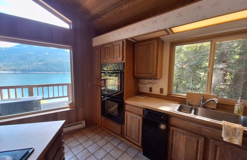 Amazing LAKEFRONT location on Lake Kachess. Community boat launch, private dock, deck overlooking the lake!This LAKEFRONT home is set on Lake Kachess - a pristine alpine lake. Lake Kachess offers a gorgeous setting of trees, hills and mountains surrounding the crystal clear blue waters. Known for fabulous water sports, access to the water at Lake Kachess is limited, so the water is never crowded. At nine miles long, over a mile wide and a maximum depth of 400 feet, Lake Kachess's clean, clear, cool water will not disappoint! This spacious cabin is right on the shores of the lake. A one minute walk from the back door and you'll be in or on the water. We have a PRIVATE DOCK reserved exclusively for your use. Launch your boat at the private community boat launch at the start of your stay, tie it up to your dock and leave it for the duration of your stay for ultimate fun and convenience. Don't have a boat? No problem! The dock is a great spot for any of your water toys (stand up paddle boards anyone?) or simply hang out, swim or jump into the water. Don't want to be in the water? Then enjoy lounging on the deck and take in the amazing views, BBQ up dinner, light the fire table or watch the birds and squirrels scurry around.