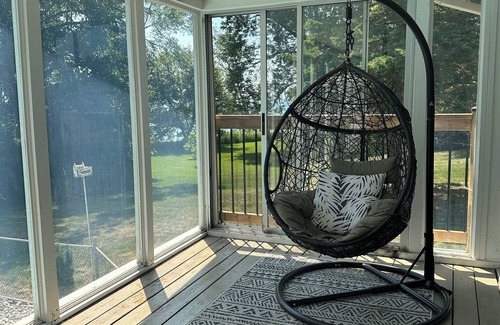Relax at our lakefront cottage on 1.5 acres, perfect for families or friends. The house features 3 bedrooms, 2.5 bathrooms, a full kitchen, living areas, a sunroom, and a downstairs game room with a second living space. A work desk is available. Sleeping arrangements: 6 in bedrooms, plus 2 on basement futons, with comforters provided. Enjoy a pool table, arcade, board games, and books. Outdoors, relax at the fire pit with Adirondack chairs, take a dip in the swimming pool (summer months), or explore the spacious grounds. Garage and shed are off-limits. Safety: No jumping off the lakefront cliff—risk of injury or death. Do not dive into the sports pool—it is shallow. Guest access: Feel free to enjoy all areas of the property—just the garage and shed are off-limits.