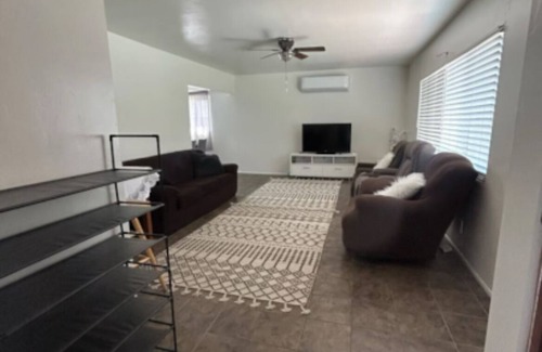 This Lake Elsinore house boasts 2 inviting bedrooms, featuring 1 queen bed and 1 full bed. The cozy living space is perfect for guests looking for a cool and welcoming retreat. With AC and heating, you'll stay comfortable no matter the season. The bathroom offers a refreshing shower to start your day off right. Feel free to reach out to us during your stay - we're happy to suggest local spots to check out.