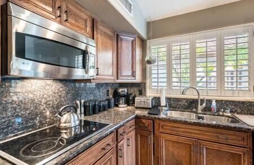 Este alojamiento de 2 dormitorios y 2 baños cuenta con una sala de estar, un comedor, un sofá cama y una zona para barbacoas. El cuarto de baño incluye un secador de pelo, toallas y papel higiénico. Prepara una comida casera en la cocina, equipada con horno, placa de cocina y frigorífico, además de cafetera y tetera, máquina de hielo y microondas. Podrás viajar con poco equipaje, porque tendrás una lavadora y una secadora a tu disposición.