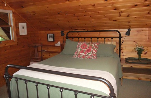 ESTA LISTA ES PARA EL DORMITORIO LAKESIDE CON EL PORCHE. Esta casa rústica de troncos se encuentra en el lago Memphremagog adyacente a la ruta para bicicletas que se extiende a lo largo del lago y se prepara para esquí de fondo en el invierno. Dos habitaciones con un baño compartido están disponibles para alquilar. El dormitorio Lakeside tiene un tamaño de la reina y una cama individual, además de una pantalla en el porche con una vista del lago. La habitación Woodside tiene una cama queen size y escritorio frente a los bosques. Acceso al lago incluye una pequeña playa privada con sillas, una canoa y kayak. El acceso limitado a la cocina está disponible bajo petición.
