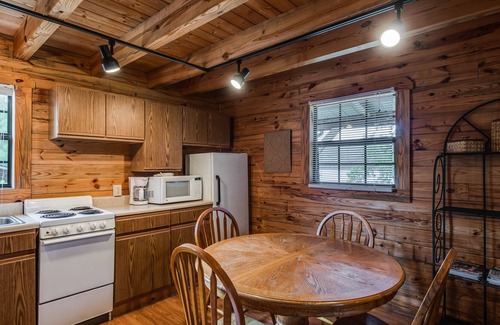 Cabin 13 ofrece 1 habitación tipo loft que incluye una cama completa y una individual, 1 baño, ideal para una pareja o una familia con niños pequeños.