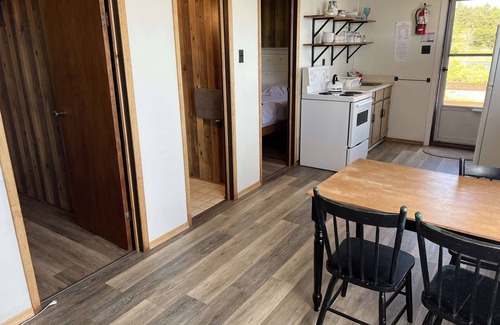 Step inside our charming Lakeview Cabin and discover a thoughtfully designed space that embraces the beauty of Georgian Bay. The open-concept living area welcomes you with expansive windows, perfectly framing the stunning lake views. This space is ideal for relaxation and gathering, featuring comfortable seating and a seamless connection to the outdoors. The cabin boasts a cozy bedroom, providing a private retreat for a restful night's sleep. The bathroom is well-appointed and functional. Outside, enjoy the fresh air and the beauty of the Canadian Shield rock from the front porch. The cottage is designed to provide a comfortable and memorable stay, with a focus on maximizing the connection with nature. The kitchen is equipped with essential appliances, including a refrigerator, microwave, and stove, allowing you to prepare your own meals. Enjoy the convenience of a dining table for enjoying meals. The property also offers a BBQ grill and a fire pit for outdoor cooking and gathering, enhancing your experience.