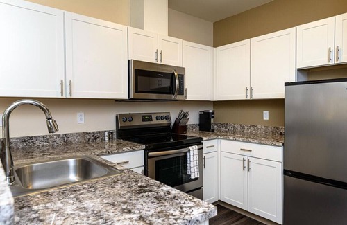 La cocina está equipada con horno, placa de cocina y frigorífico, además de cafetera y tetera, microondas y tostadora. Disfruta de la conexión a Internet y de la televisión. Otras comodidades de este alojamiento de 1 dormitorio y 1 baño incluyen ropa de cama, un escritorio, una tabla de planchar y servicio de limpieza disponible a petición.