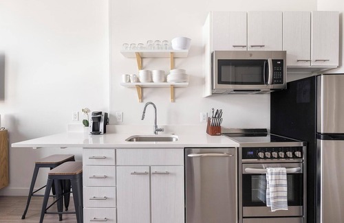 Stay at the center of Denver’s coolest neighborhood at Ride at RiNo, where art, music, and culture are right outside your door. Our fully-furnished studio apartments feature full kitchens, high ceilings, fast WiFi, and on-site facilities. Enjoy mountain and city views from the rooftop deck, complete with a fire pit, grills, and lounge seating. With a fitness room, bike storage, and breweries, concerts, and coffee shops nearby, a stay in RiNo feels just like home.