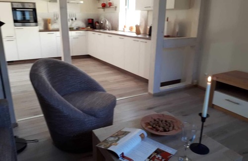En la casa hay dos apartamentos separados con comodidades de lujo, en un estilo moderno de casa de campo. En cada uno de los aproximadamente 76 m² hay un área de cocina-salón con un diseño generoso, 2 dormitorios con dos camas (es posible un sofá cama adicional) y un baño con ducha distribuida en dos plantas. La calidad de vida contribuye a una cocina totalmente equipada, así como a las toallas y la ropa de cama disponibles.
