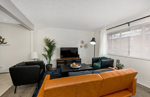 Este alojamiento de 2 dormitorios y 1.5 baños cuenta con una sala de estar, aire acondicionado y escritorio. Conéctate al wifi gratis, o relájate frente a un Smart TV. El cuarto de baño incluye un secador de pelo, toallas y papel higiénico. La cocina está equipada con placa de cocina, frigorífico y lavavajillas, además de cafetera y tetera, microondas y utensilios de cocina. Y gracias a la lavadora y la secadora, podrás viajar con poco equipaje. Otras comodidades incluyen ropa de cama, una tabla de planchar, calefacción y una silla de oficina.