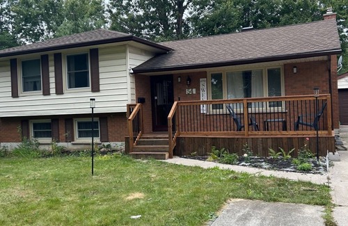 This stylish detached home main floor is located in a quiet & safe neighborhood, an airport, Mall, park, trails & restaurants. You will enjoy upgraded amenities new furniture & appliances, a spacious living area kitchen, a fully-equipped kitchen, an in-unit washer/dryer, etc. Our spacious and newly renovated bungalow in London. Nestled near serene ponds and scenic trails, this 3-bedroom cozy living area, and tastefully decorated bedrooms are designed for ultimate relaxation.Basement not included separately rented .