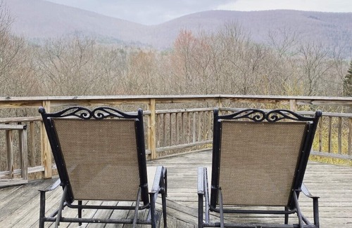 Again the decks are massive. There are 3: Side deck with propane and smoker Bbq's: Easy access to kitchen. Back deck directly off of great room. And massive carport deck on opposite side accessed by upstairs bedroom or stairs connecting lower deck. This deck has optimal view of all the mountain range. All decks are connected. So easy walk around house from all locations. Large seasonal sun room with windows and screens with includes several comfortable chairs and daybed. This room is great for taking in the views and experiencing the outside regardless of weather.