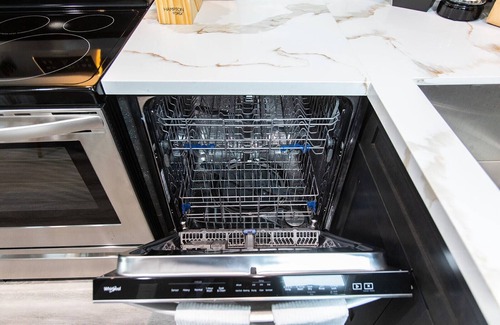 Prepare delicious meals in our fully equipped kitchen, complete with a Keurig coffee maker for your morning brew, a Brita water filter for clean drinking water, and a microwave for quick meals. All the pots, pans, and dishes you need are provided, and cleanup is a breeze with the dishwasher.