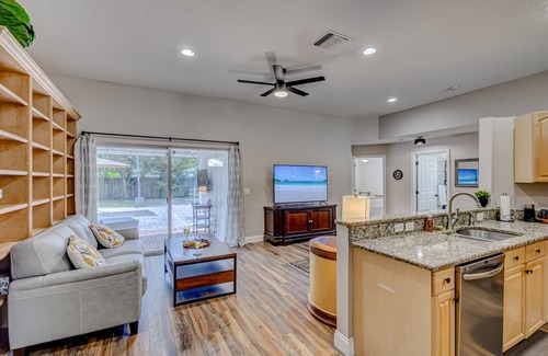 Al instalarte en este alojamiento de 4 dormitorios y 2 baños, encontrarás una zona para barbacoas y aire acondicionado. Conéctate al wifi, o relájate frente a un Smart TV. También puedes utilizar la bañera de hidromasaje, además de otras comodidades como toallas, champú y jabón. La cocina está equipada con horno, placa de cocina y frigorífico, además de cafetera y tetera, máquina de hielo y olla para cocinar langostas. Podrás viajar con poco equipaje, porque tendrás una lavadora y una secadora a tu disposición. Otras comodidades incluyen ropa de cama, una tabla de planchar y calefacción.