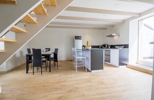 En esta casa de vacaciones para no fumadores podrás disfrutar de la pesca, del senderismo y de mucho más a muy poca distancia. El alojamiento dispone de aparcamiento en las instalaciones. Además, estarás a 4min en coche de Golfo de Vizcaya y a 6min en coche de Playa de Kervégan.
