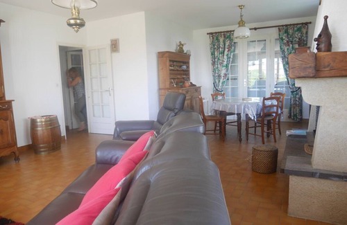 It includes a fitted kitchen (fridge-freezer, 4-burner ceramic hob, electric oven, dishwasher, microwave, washing machine), a spacious living-dining room with television, a bedroom (1 double bed 140), a bedroom (1 double bed 140 and 1 single bed 0.90), bathroom (Italian shower, washbasin), toilet, garage. Enclosed garden. Pets allowed.