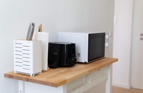 As you settle into this 2-bedroom, 1-bathroom rental, you'll find a living room, a dining area, and a desk. Enjoy the WiFi and Smart TV. Bathroom amenities include a hair dryer, towels, and toilet paper. The kitchen is equipped with an oven, a stovetop, and a refrigerator, as well as a coffee maker, an electric kettle, and a microwave. And because there's a washer and dryer, you can go a bit lighter on your packing. Other amenities include bed sheets, heating, a desk chair, and a dining table.