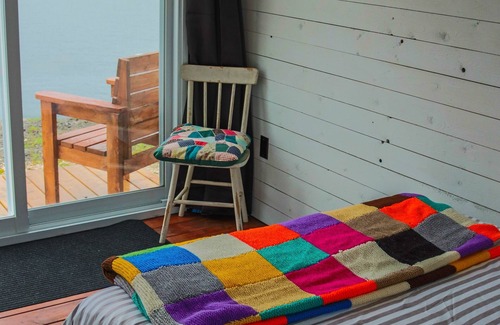 Cada cápsula se construyó con abeto negro de Terranova que se cosechó localmente y contiene una cama doble, un receptáculo eléctrico, un receptáculo USB incorporado, luz, estante, plataforma para observación de ballenas, 2 sillas exteriores, cortina opaca y, por supuesto, esas vistas panorámicas frente al mar de la bahía de Bonne. Observe a las ballenas jugar en la bahía desde la comodidad de su cama.