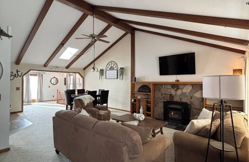 Al instalarte en este alojamiento de 3 dormitorios y 2 baños, encontrarás chimenea, aire acondicionado y escritorio. Conéctate al wifi, o relájate frente a un Smart TV. El cuarto de baño incluye un secador de pelo, toallas y papel higiénico. Prepara una comida casera en la cocina, equipada con horno, placa de cocina y frigorífico, además de cafetera y tetera, máquina de hielo y microondas. Y gracias a la lavadora y la secadora, podrás viajar con poco equipaje. Otras comodidades incluyen ropa de cama, una tabla de planchar, calefacción y una silla de oficina.