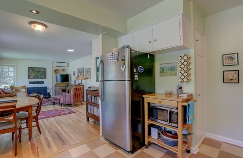 El nuevo colchón en la cama matrimonial del dormitorio principal y un doble antiguo en el segundo dormitorio son el boleto a los dulces sueños para hasta 4 personas. La espaciosa sala de barro / lavandería es ideal para guardar equipos y está llena de mi colección de libros de cocina. La cocina luminosa está completamente equipada con suministros de cocina gourmet para servir y electrodomésticos nuevos para cocinar una tormenta, ya que esta es nuestra casa privada en otoño, invierno y primavera.